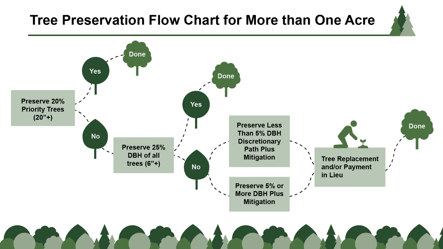 - Exception: Land division and Site Plan Review applications on sites one acre or smaller may choose to either comply with the tree preservation requirements or provide mitigation.